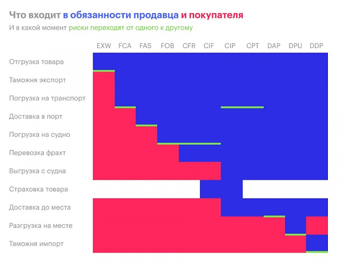 Инфографика зон ответственности продавца и покупателя по базисам.
