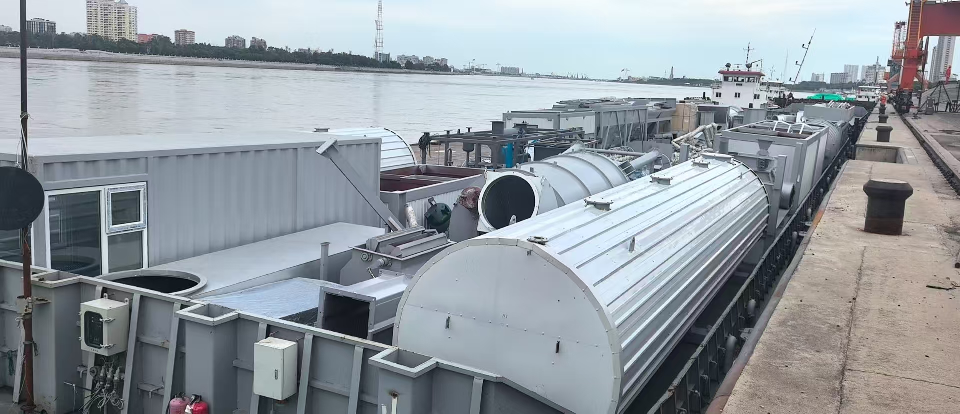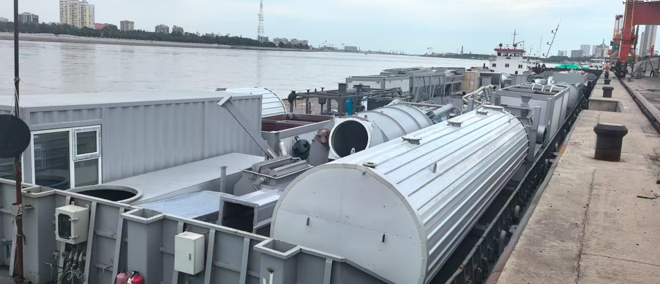 На второй стадии компоненты АБЗ пересекли р. Амур между торговыми портами Хэйхэ и Благовещенска. Для этого были совершены такие операции, как перегрузка многотонного оборудования на речную баржу в КНР и выгрузка с неё в РФ. Каждый перегружаемый элемент был зафиксирован на фото и видео для отчётности по требованию клиента.