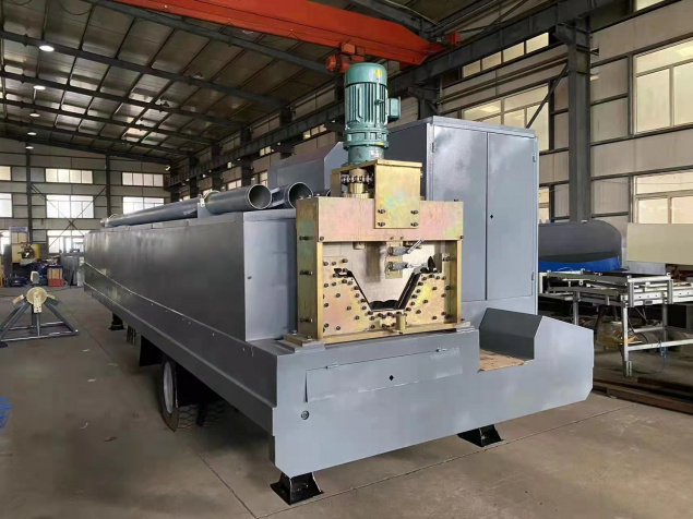 Это мобильный станок на грузовом шасси для строительства бескаркасных арочных сооружений, позволяющий застройщику быстро подготовить качественный строительный материал (дугообразные стальные секции) непосредственно на площадке возведения ангара. За счёт шасси станок может эксплуатироваться в самых удалённых местах, а встроенный дизельный генератор помогает ему обходиться без стационарной энергетической сети.