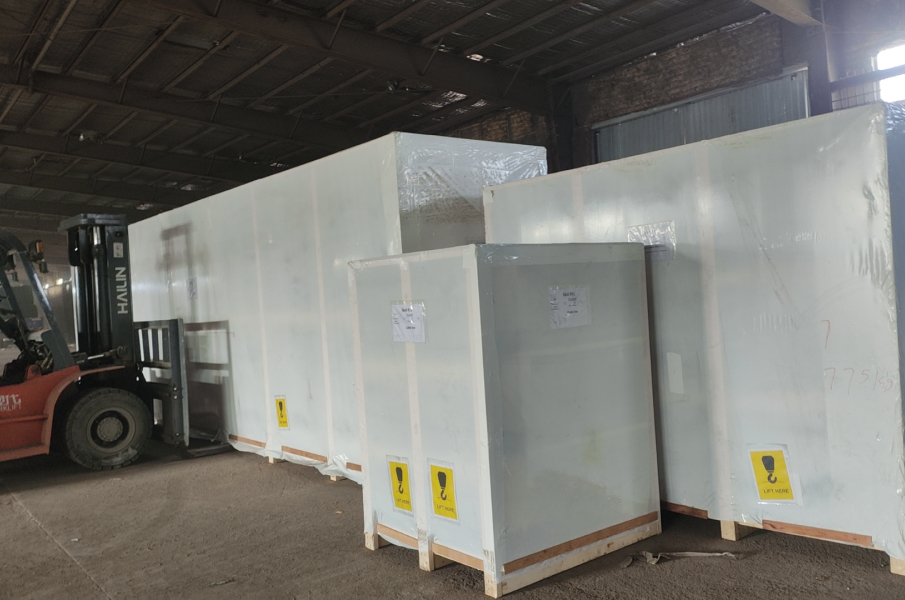 Наши специалисты вышли на контакт с изготовителем оборудования в КНР и договорились о дате отгрузки. В назначенный день подали на заводскую площадку 17 машин местного китайского перевозчика. Все ТС оперативно загрузились (всего 63 места) и доставили груз в приграничный город Хэйхэ. Здесь линию выгрузили, а сотрудники нашего склада приняли её по номенклатуре. Далее груз подготовили к пересечению границы и успешно вывезли из Китая в Россию.