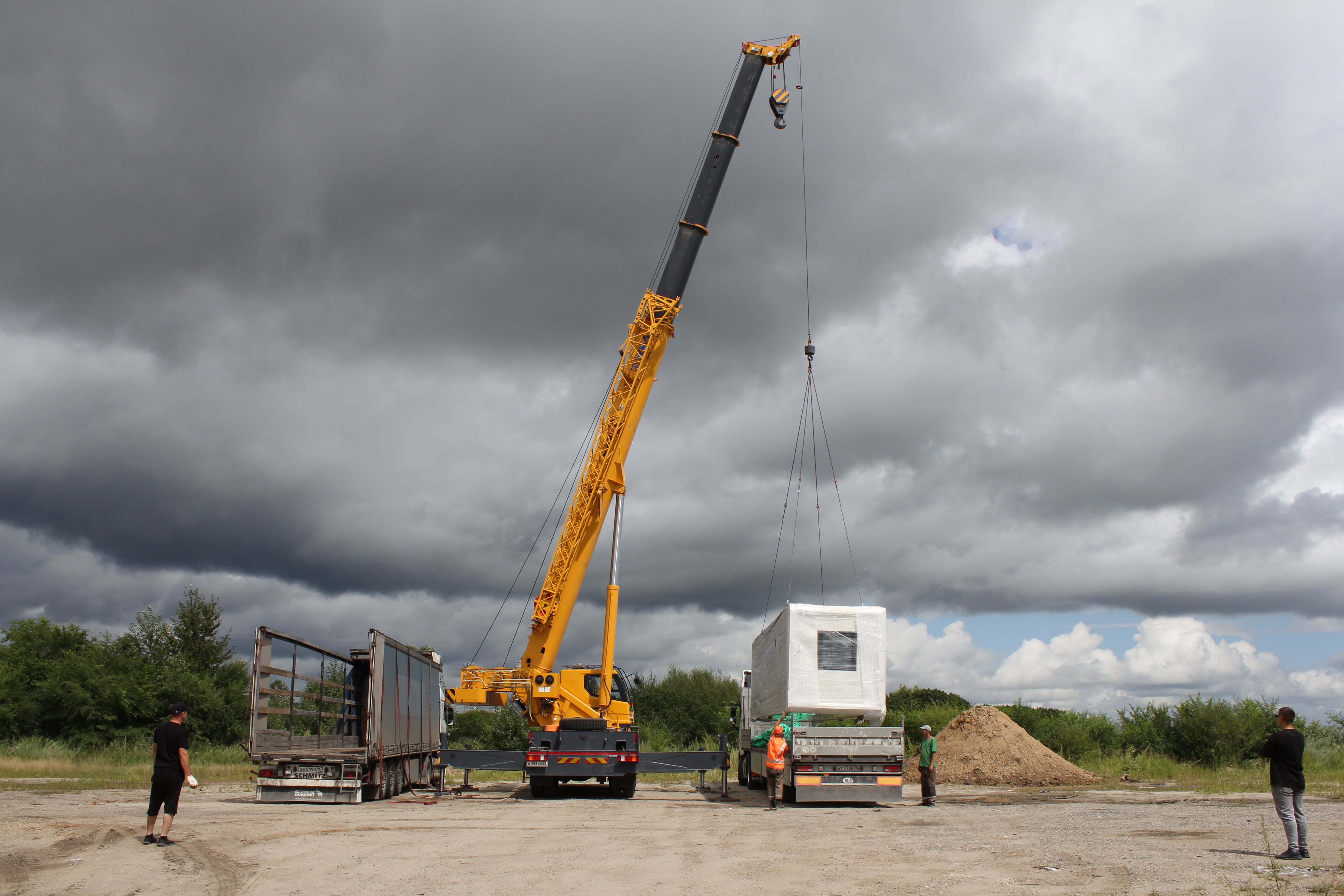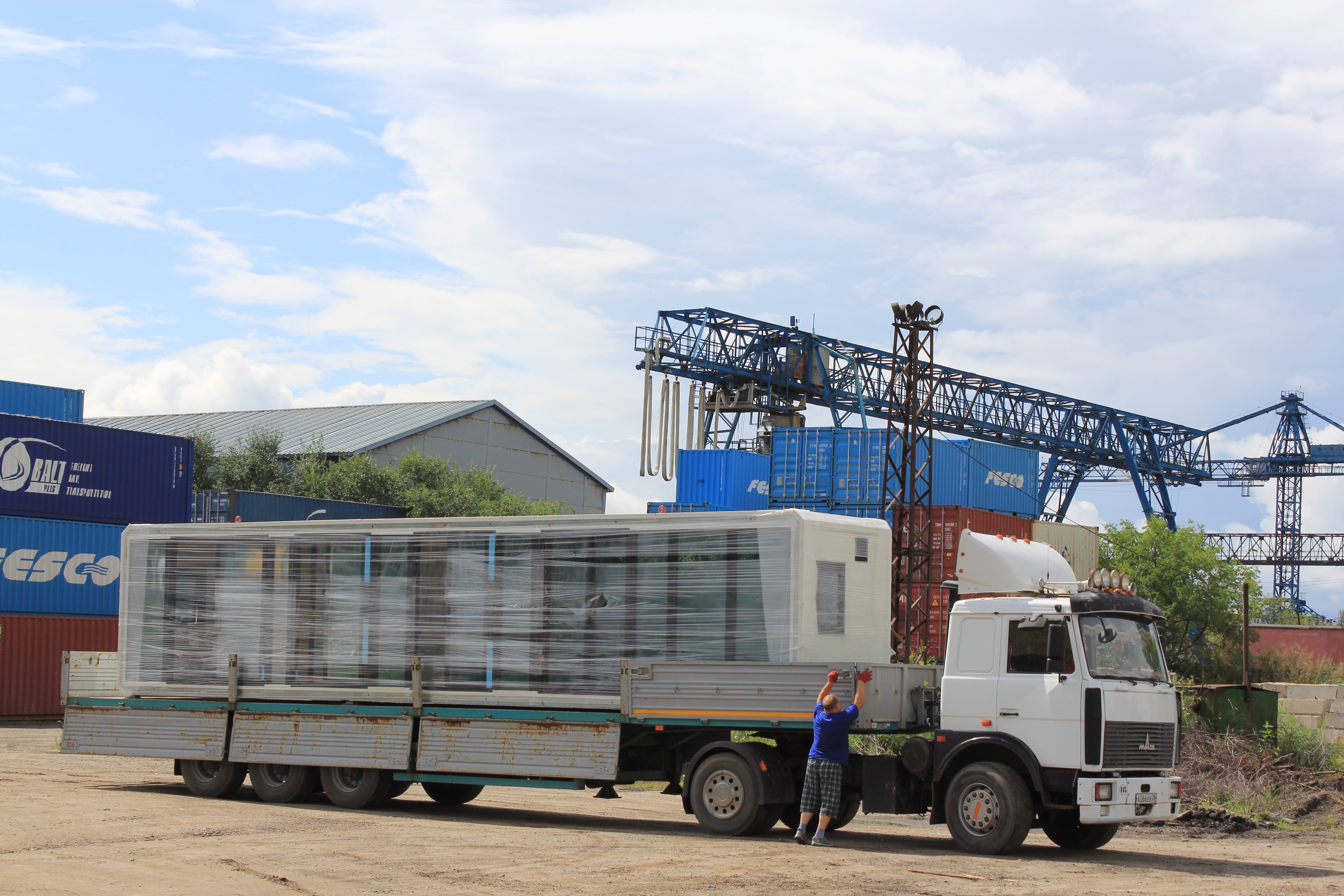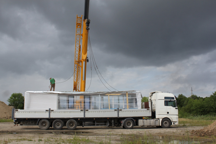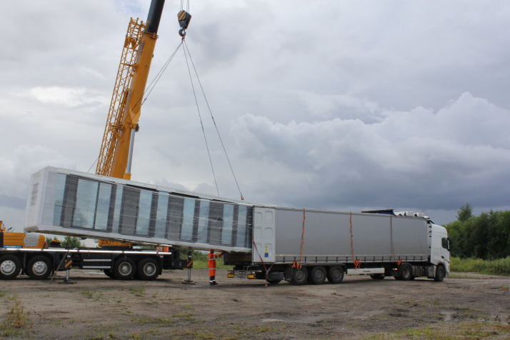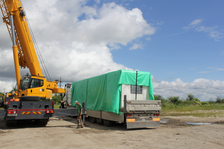 *На момент отгрузки на фабрике нас предупредили, что в комплекте с домами идут заправленные фреоном кондиционеры, а это опасный к перевозке груз. Мы попросили изготовителя снять заправленные кондиционеры, а пустые отправить другой машиной. В Хэйхэ, на нашем консолидационном складе, сотрудники разложили климатические установки по авто согласно техдокументации для таможни.