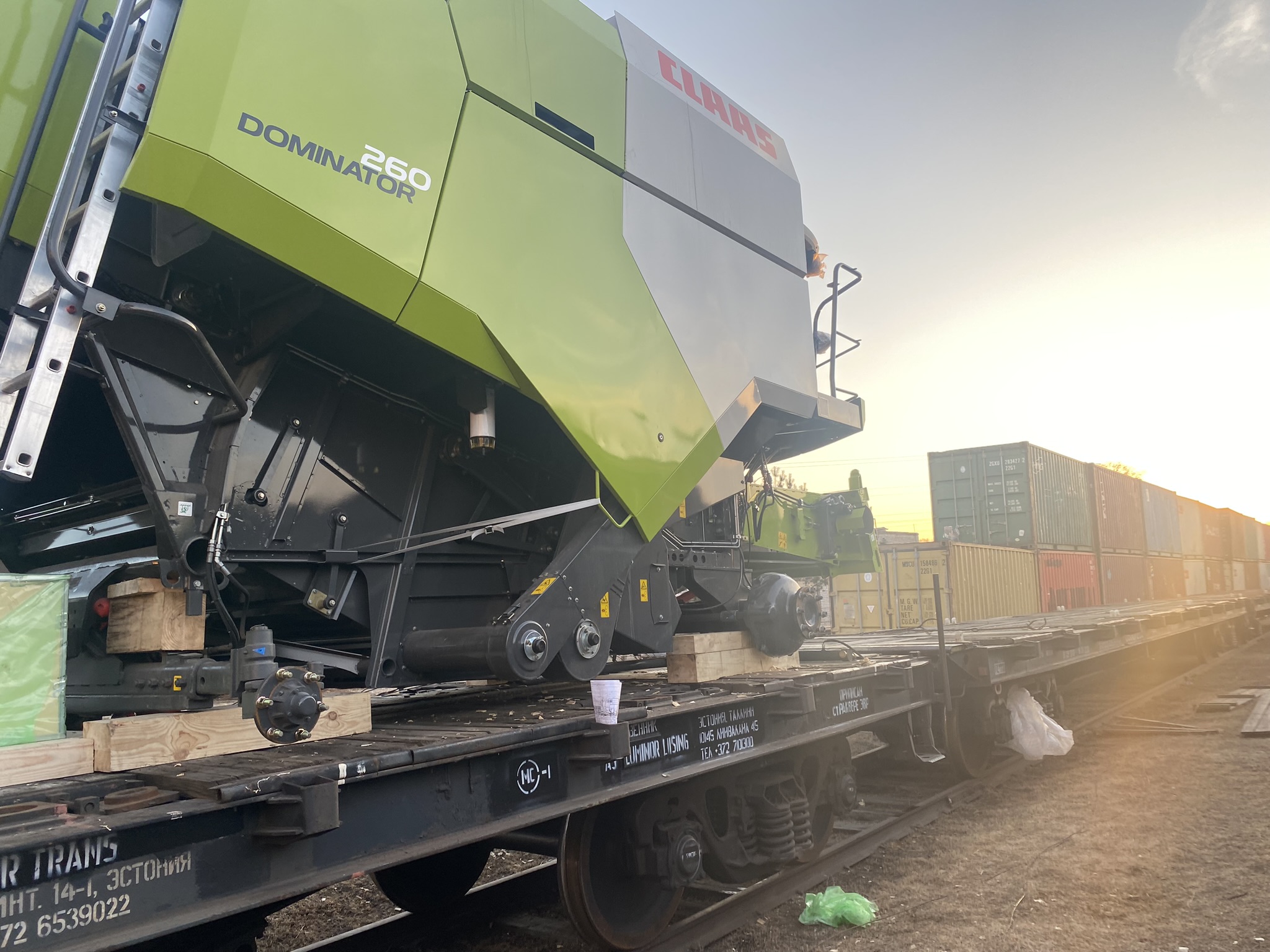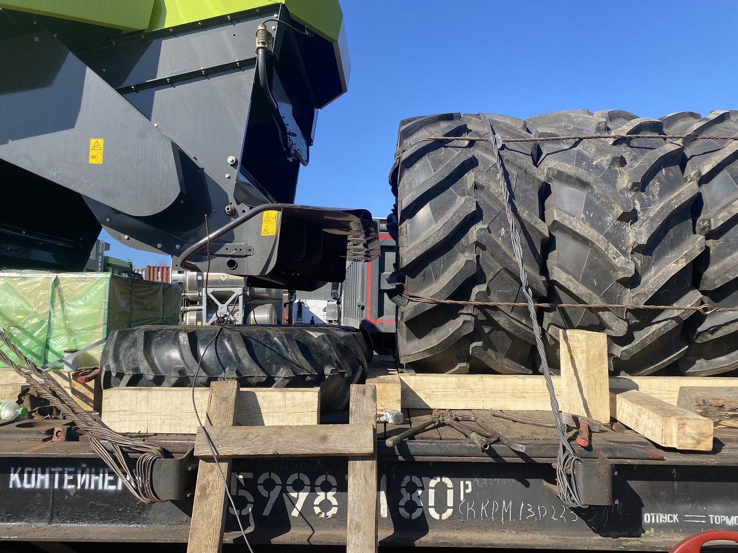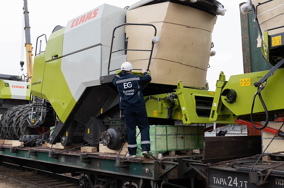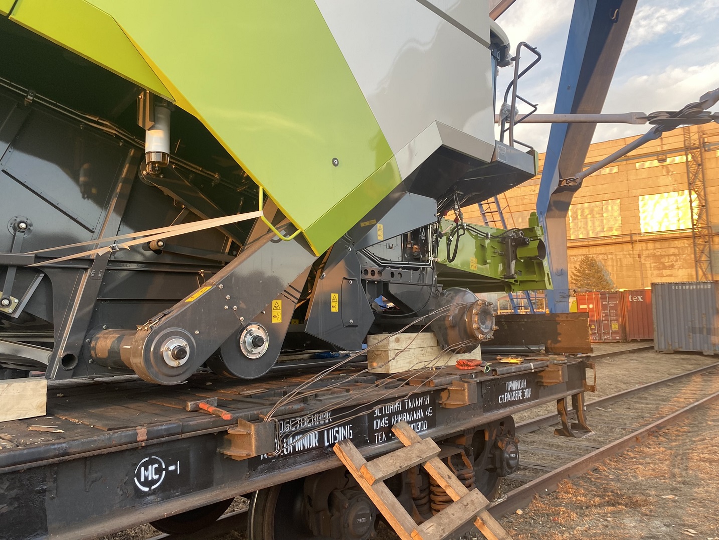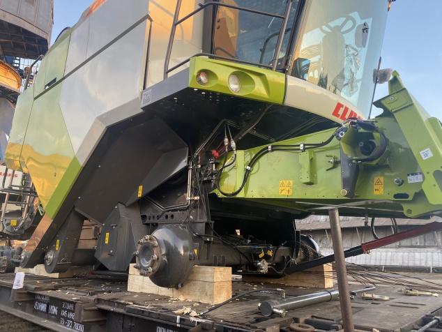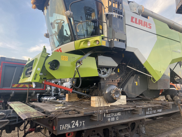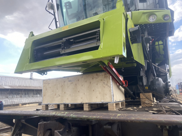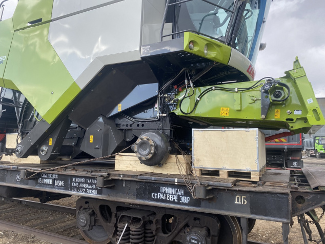 О подготовке комбайнов к погрузке: Поскольку маршрут Благовещенск–Тбилиси достаточно длинный (9090 км), мы привлекли на погрузочные работы специалистов CLAAS Россия. Они оценили качество залитого в моторы антифриза, чтобы замёрзшая жидкость не повредила систему охлаждения (ночная температура регулярно опускалась до -35°C). Частично разобрали комбайны, надёжно закрыли стёкла и детали кузова щитами OSB для транспортировки по правилам РЖД. В таком увязанном виде груз передали на станцию.