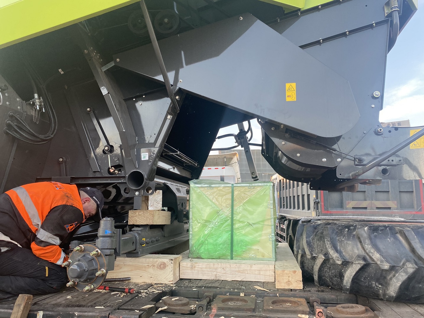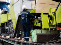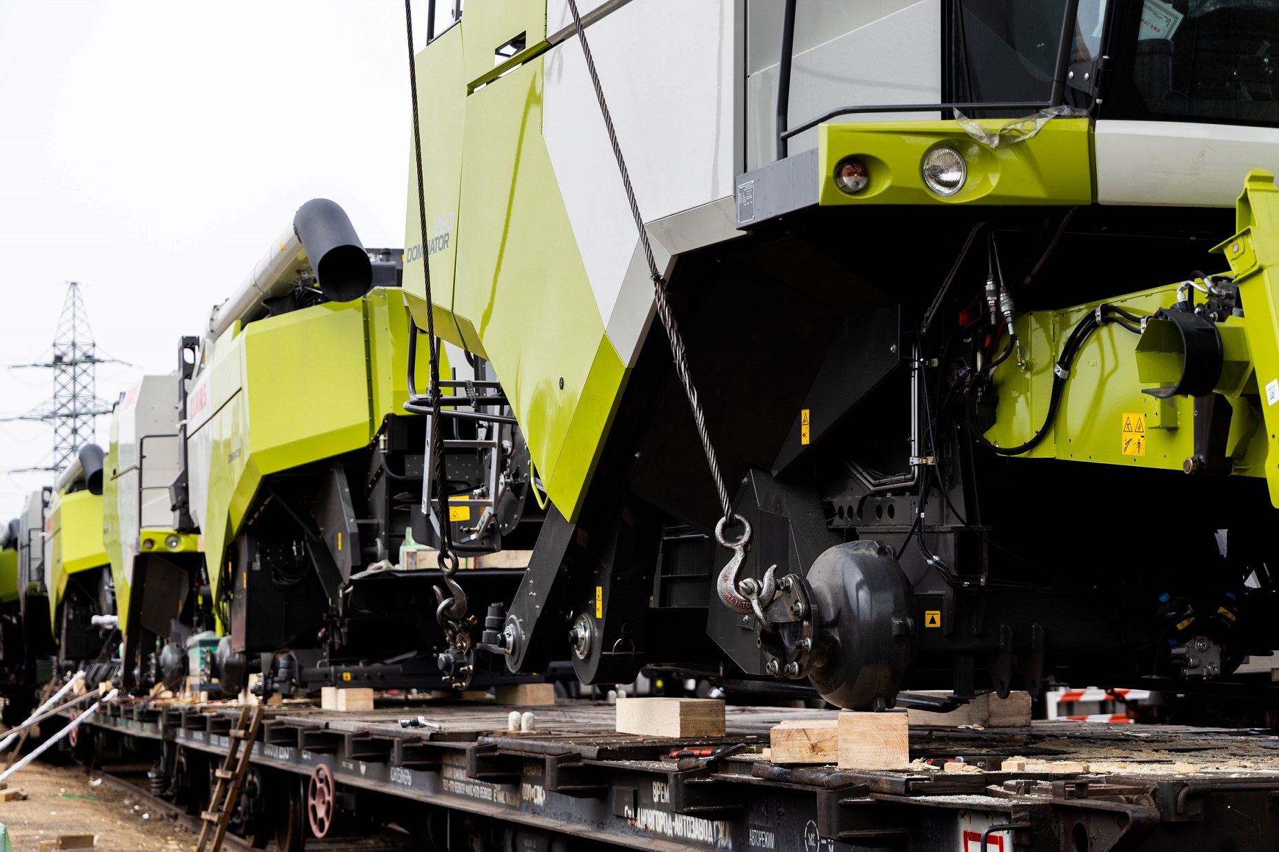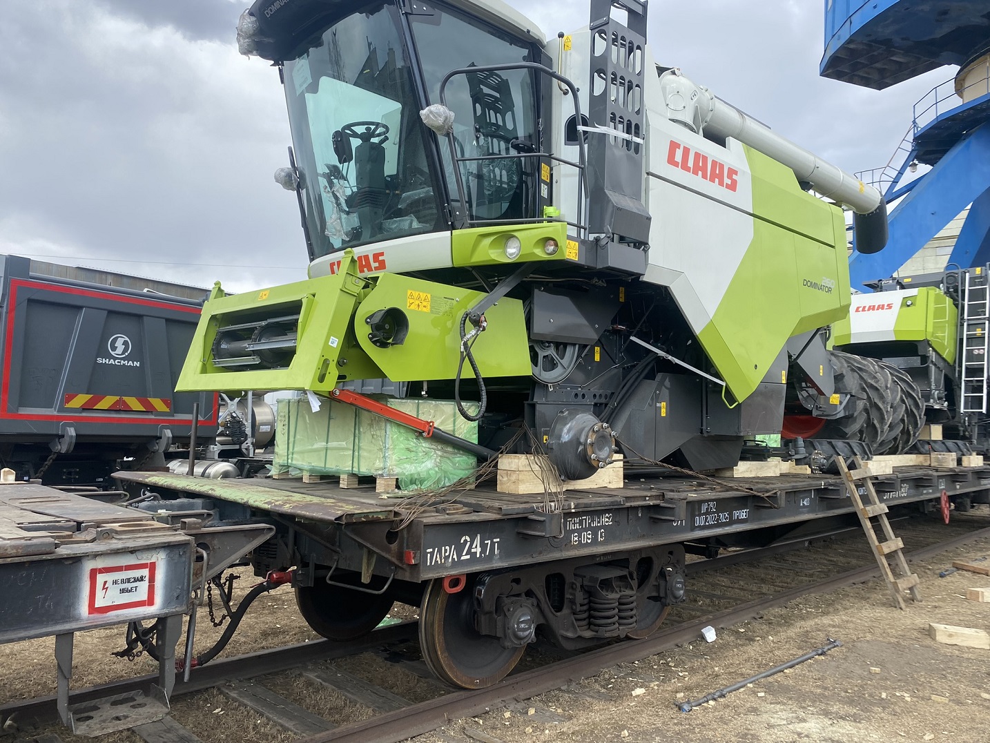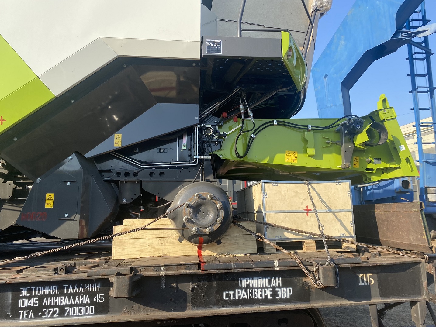 О подготовке комбайнов к погрузке: Поскольку маршрут Благовещенск–Тбилиси достаточно длинный (9090 км), мы привлекли на погрузочные работы специалистов CLAAS Россия. Они оценили качество залитого в моторы антифриза, чтобы замёрзшая жидкость не повредила систему охлаждения (ночная температура регулярно опускалась до -35°C). Частично разобрали комбайны, надёжно закрыли стёкла и детали кузова щитами OSB для транспортировки по правилам РЖД. В таком увязанном виде груз передали на станцию.